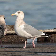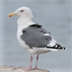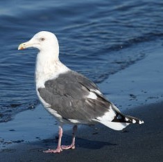 北海道や東北地方で繁殖し、冬鳥として三番瀬でも時々見られます。全長約65㎝と大型のカモメです。嘴や脚の色などセグロカモメにて良く似ていますが、背中や翼の灰色がより暗い色をしているのが特徴です。