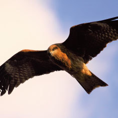 全長約60㎝。全体的に茶色で尾羽の中央が凹んでいるのが特徴です。水辺から山地まで様々な場所で生活し、三番瀬でも風に乗って空を漂う様子が見られます。主に屍肉を食べます。