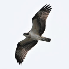 全長約60㎝の年間を通して見られるタカの仲間です。海岸や河川周辺で魚などを捕まえて生活しています。普段は海の杭などにとまって、獲物を探したり、食べたりしています。運が良いと狩りの様子が見られるかもしれません。