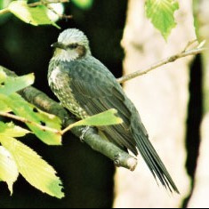 全長約28㎝。全体的に灰褐色で頬が茶色いのが特徴です。日本全土で広く見られますが、季節によって群れで移動しながら生活します。花の蜜や果実を好み、都市部の緑地でもよく見られます。集団で「ピー、ピー」と大きな声で鳴きます。