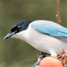 全長約37cm。頭部は黒く、風切り羽と尾羽が鮮やかな水色の鳥です。名前の通り尾が長く、翼は短く幅が広いのも特徴です。優雅な見た目に反して、鳴き声は「ギャーギャー」とだみ声です。小さな群れで行動する様子をよく見かけます。