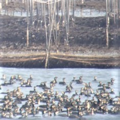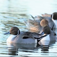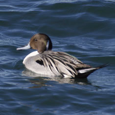 10月から3月にかけて三番瀬に飛来するカモの仲間です。名前のとおりオスの尾が長いことが特徴です。オスには首に白い線が入ります。植物食の強い雑食で、護岸の海藻や海底の貝を逆立ちになって泳ぎながら食べます。