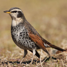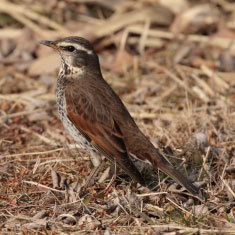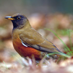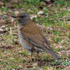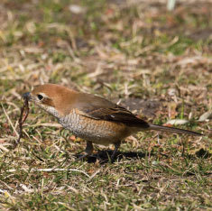 全長24 cmの冬鳥で、大きさも体型もツグミに似ています。公園や防風林などの林縁で見かけることが多く、特に冬季は木の実を探している姿を見かけます。浦安で冬季に観察できるものは、頭部が黒い亜種のオオアカハラだと考えられます。