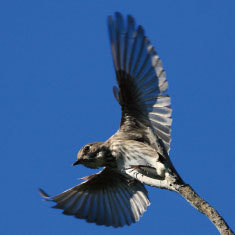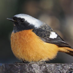 全長14 cmの冬鳥です。翼に白い模様があることから着物の紋付きにたとえて紋付鳥と呼ばれることもあります。公園を始め、市街地でもよく見られます。木の枝や木杭、電柱にとまり、ピョコッとお辞儀した後細かく尾羽を震わせる行動をします。